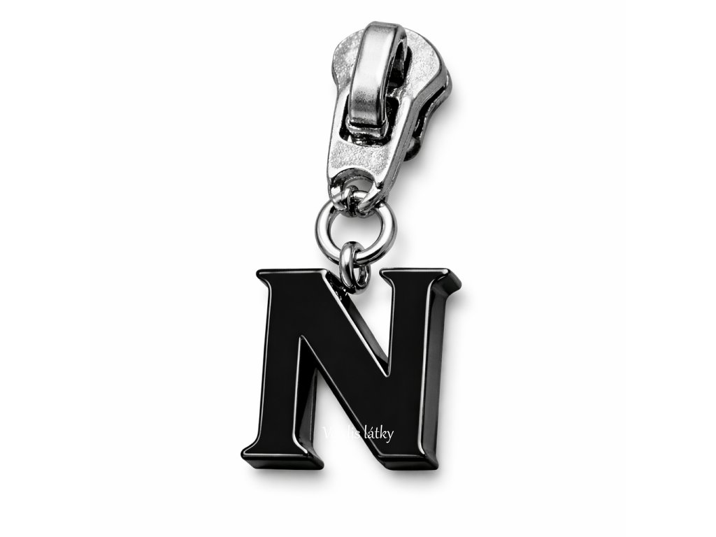 Jezdec kovový pro zip 5mm s přívěškem - písmenko