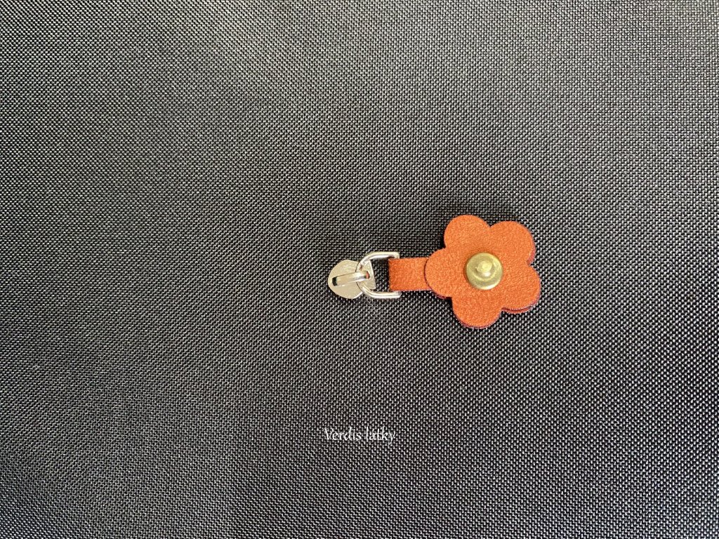 Jezdec kovový pro zip 5mm s přívěškem kytička - oranžová