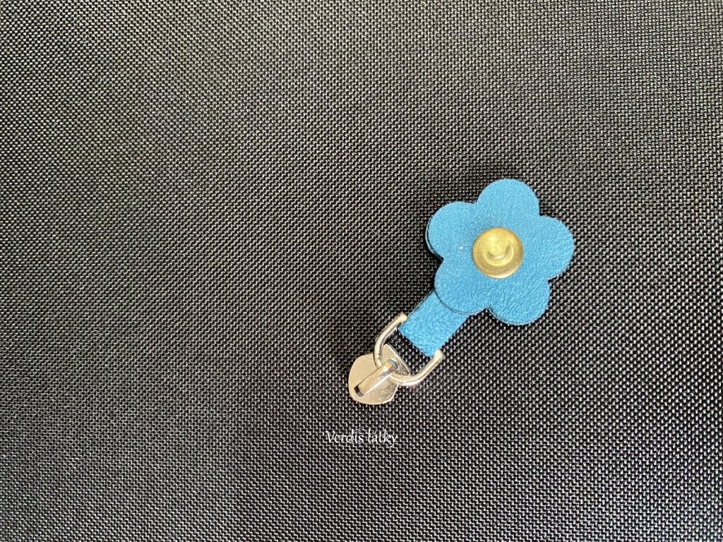 Jezdec kovový pro zip 5mm s přívěškem kytička - tyrkysová