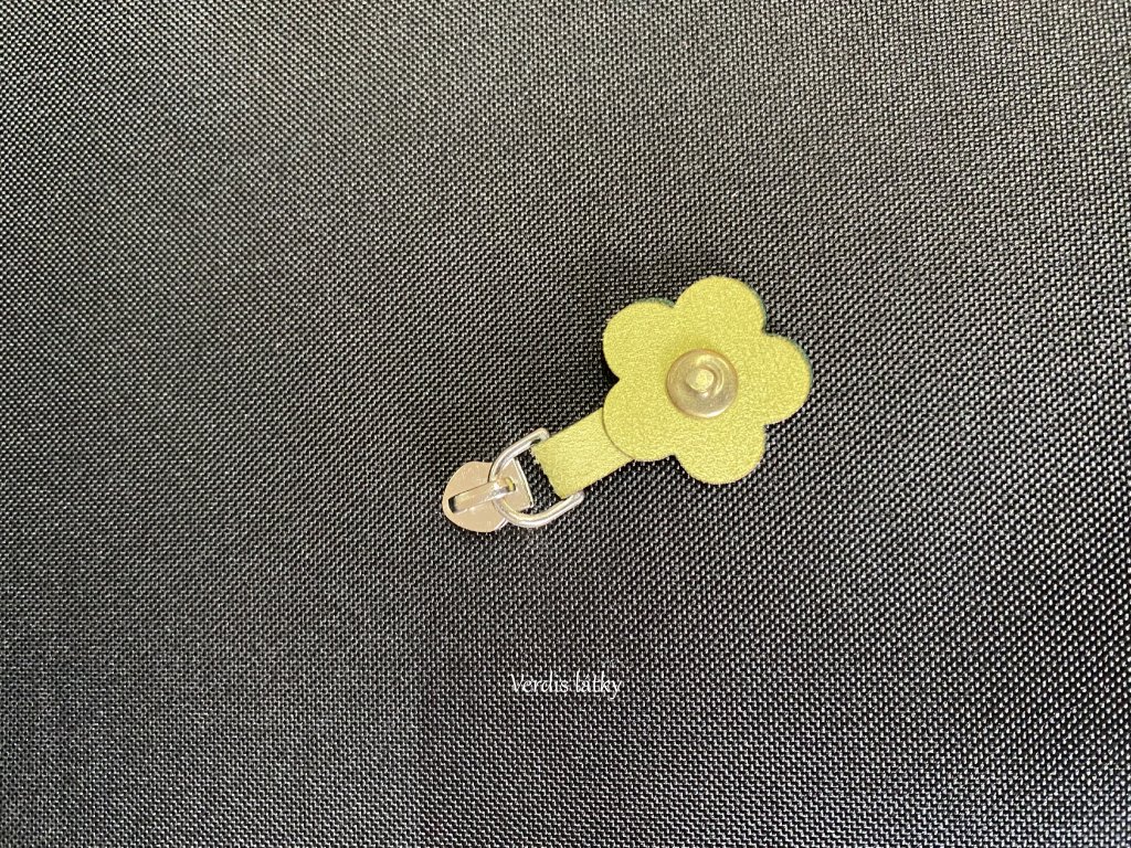 Jezdec kovový pro zip 5mm s přívěškem kytička - zelenkavá