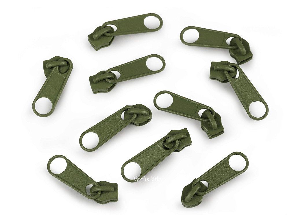 Jezdec kovový zelený olivový pro zip 5mm