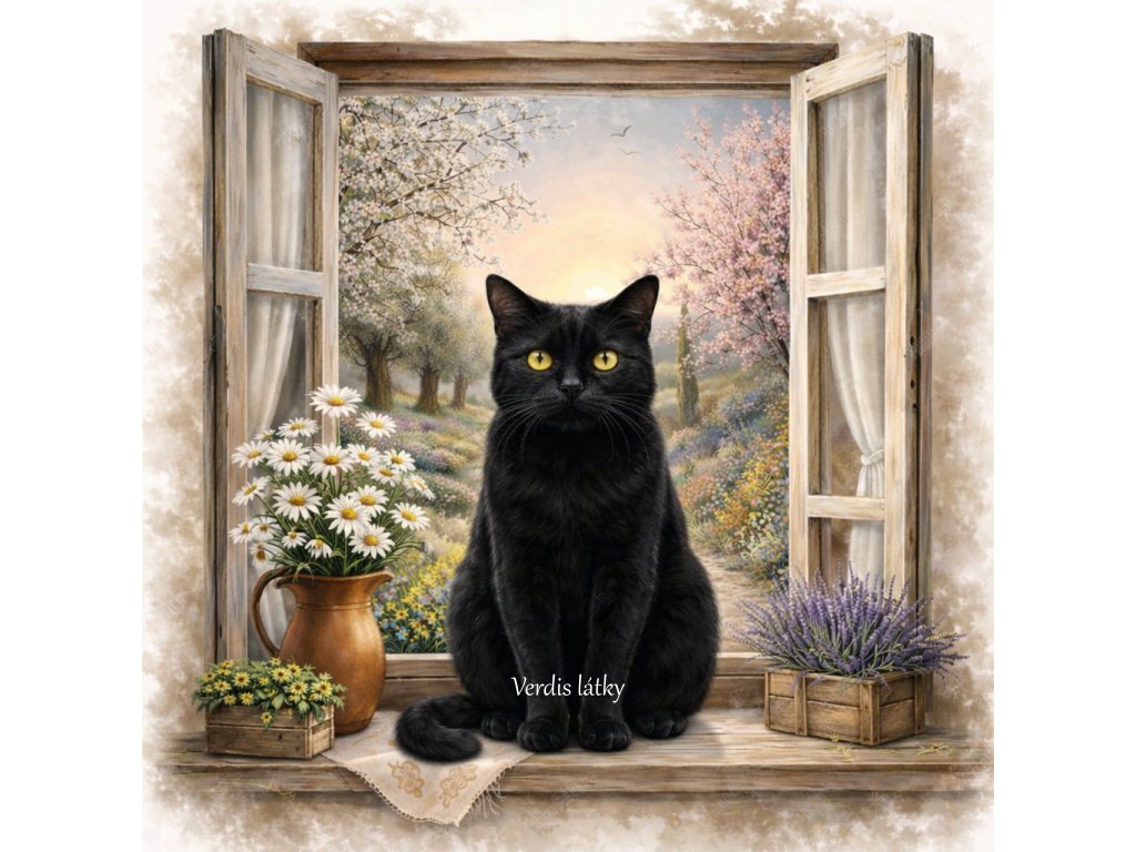 Kočárkovin panel kočička okno jarní 1
