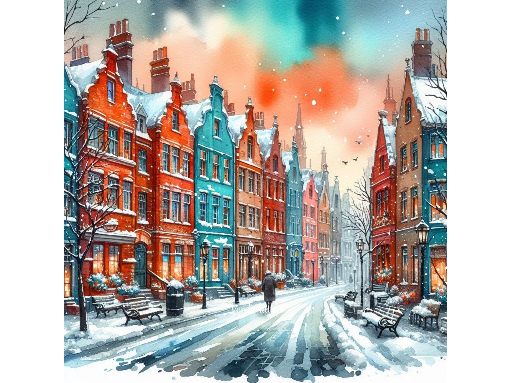 Kočárkovina domečeky zimní acvarel 14