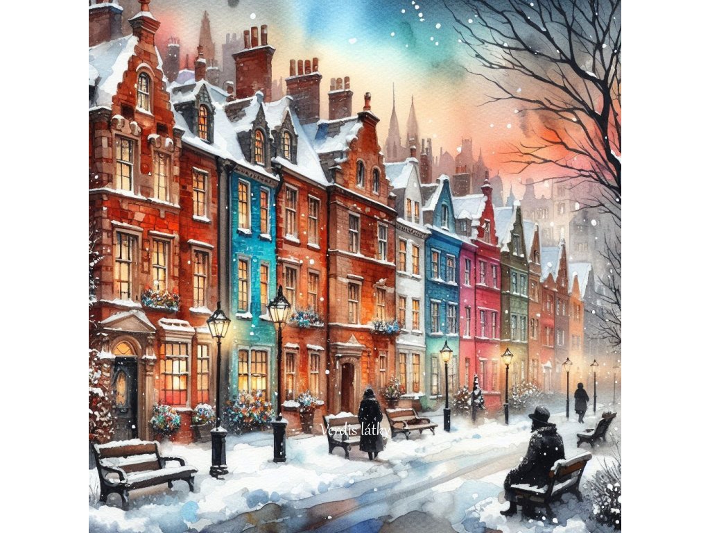 Kočárkovina domečeky zimní acvarel 15