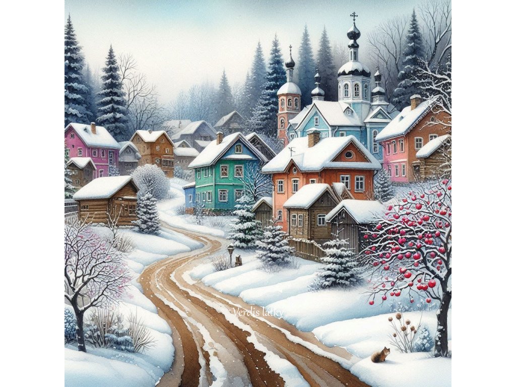 Kočárkovina domečeky zimní acvarel 6