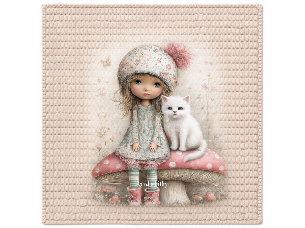 Kočárkovina panel holčička s kočičkou háčkované pozadí