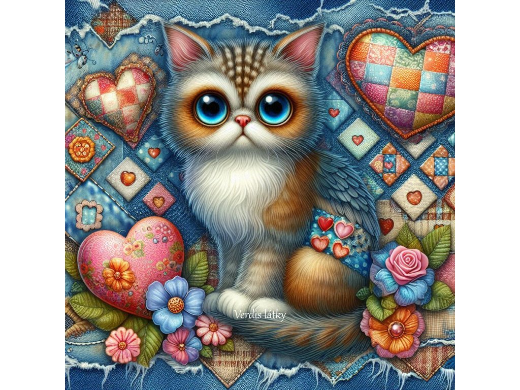 Kočárkovina panel kočka patchwork jeans 1