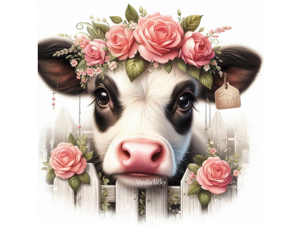 Kočárkovina panel kráva s růžemi 2