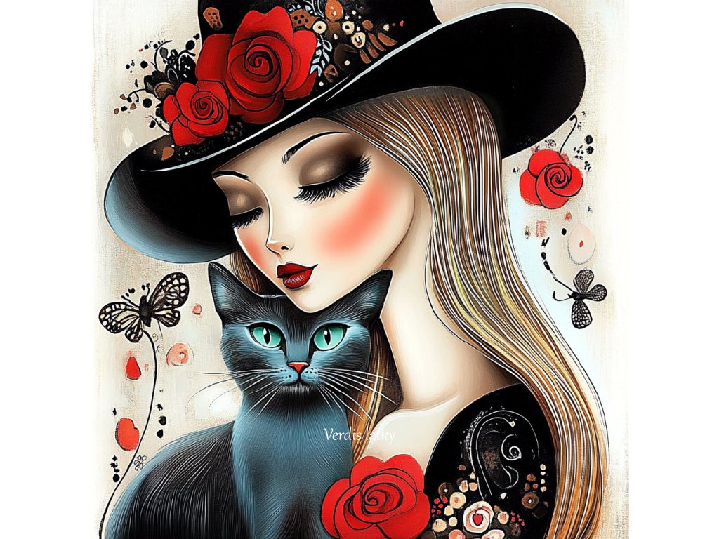 Kočárkovina panel žena s kočkou červenočerná 4