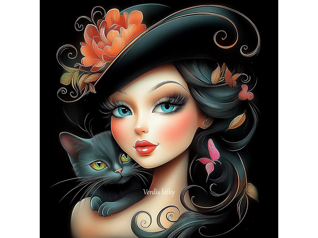 Kočárkovina panel žena s kočkou kresba na černé 1