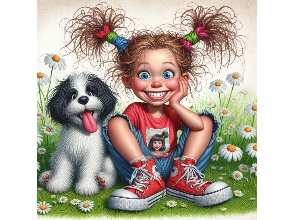 Kočárkovin panel holčička s pejskem v trávě 2