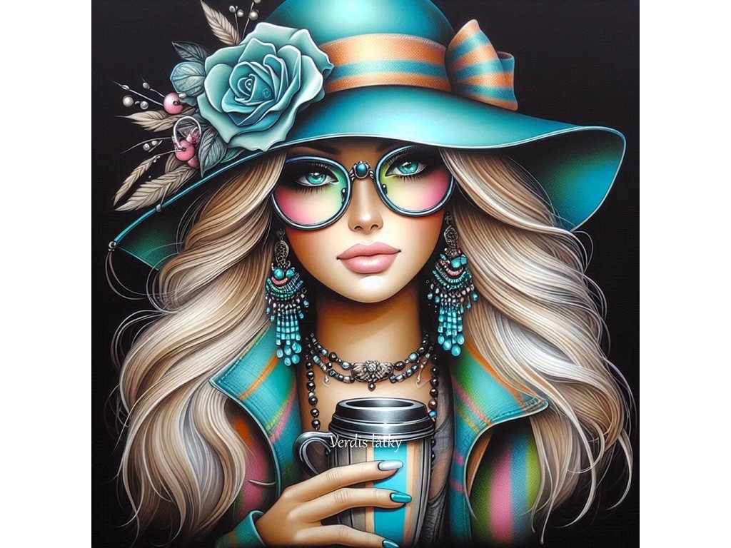 Kočárkovina panel dáma barevná s kávou na černé 2