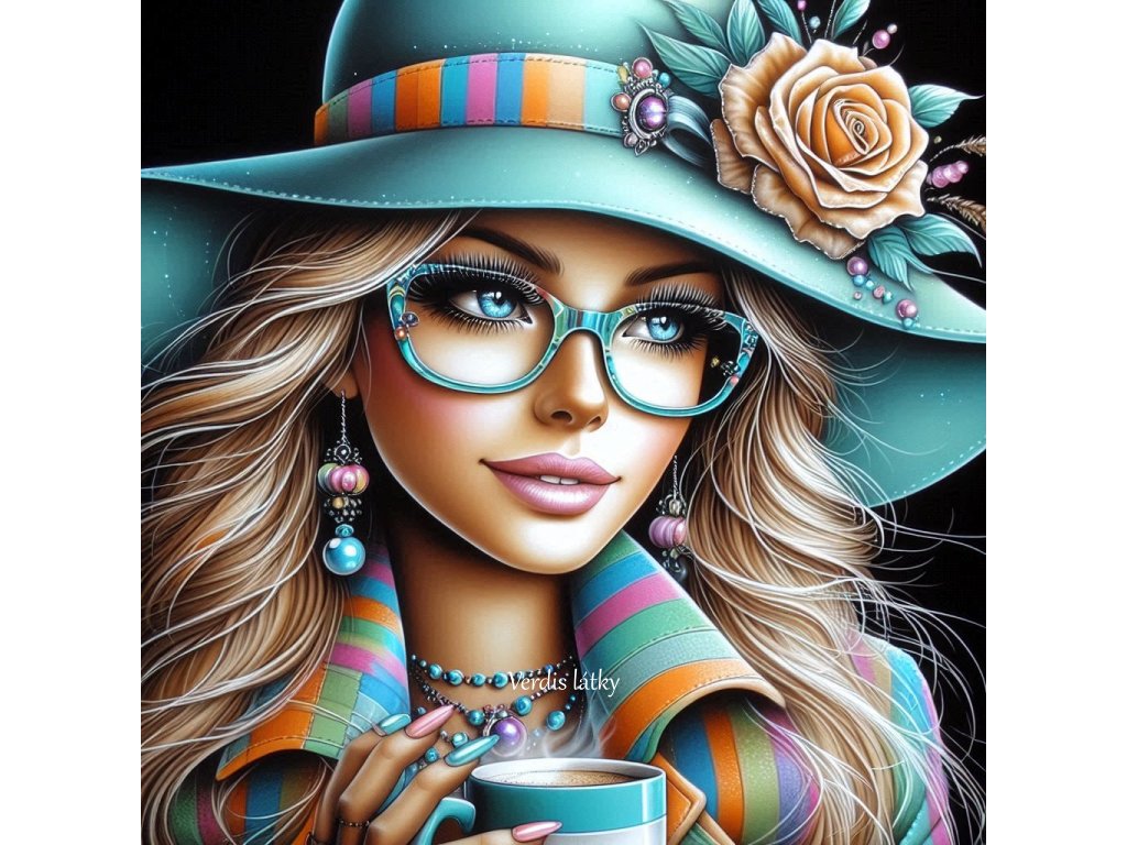 Kočárkovina panel dáma barevná s kávou na černé 4