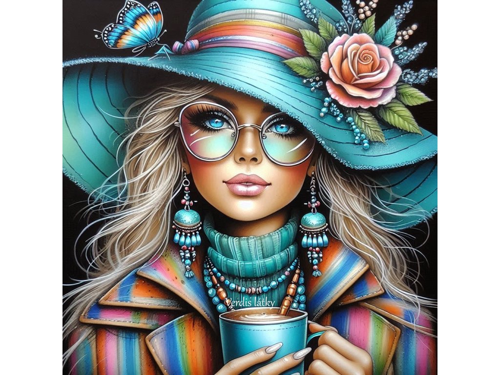 Kočárkovina panel dáma barevná s kávou naa černé 1