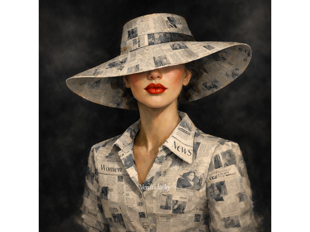 Kočárkovina panel dáma s kloboukem noviny