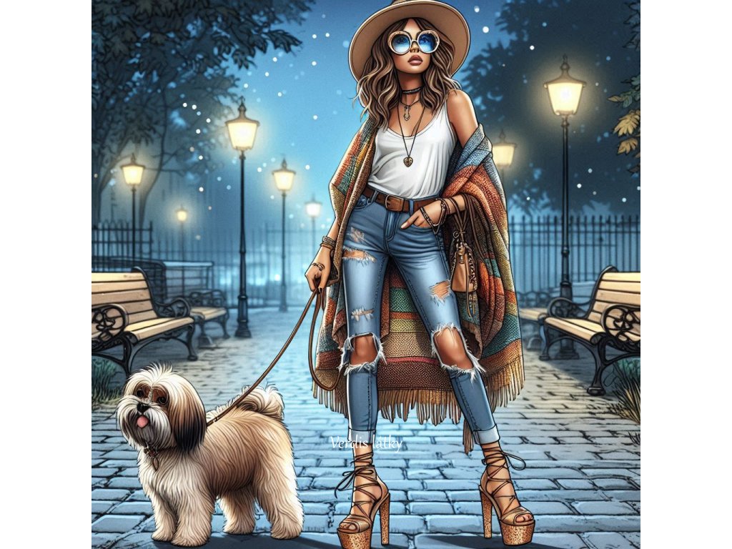 Kočárkovina panel dáma se psem noční město 18