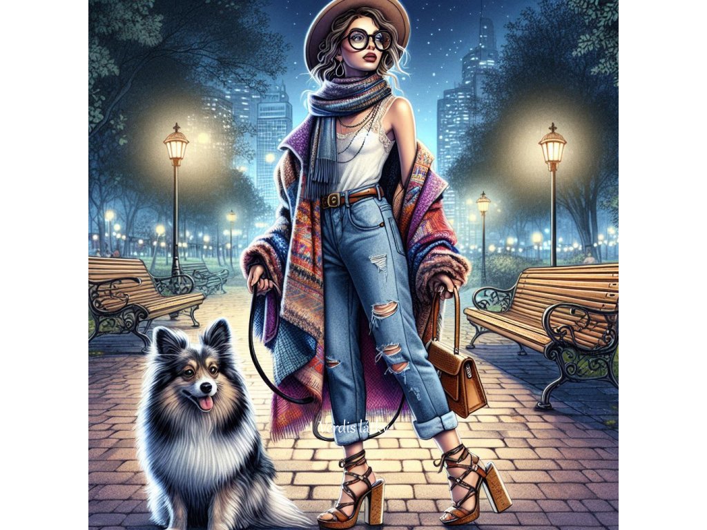 Kočárkovina panel dáma se psem noční město 2