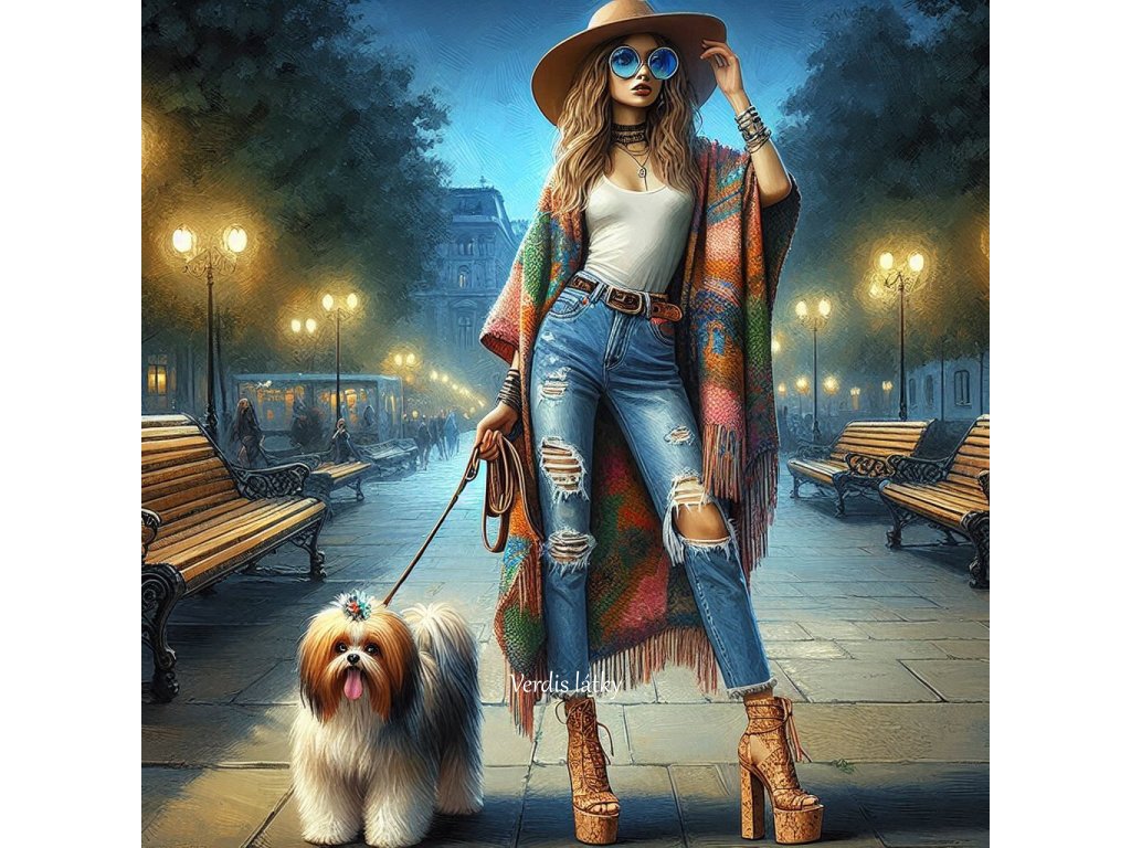 Kočárkovina panel dáma se psem noční město 6