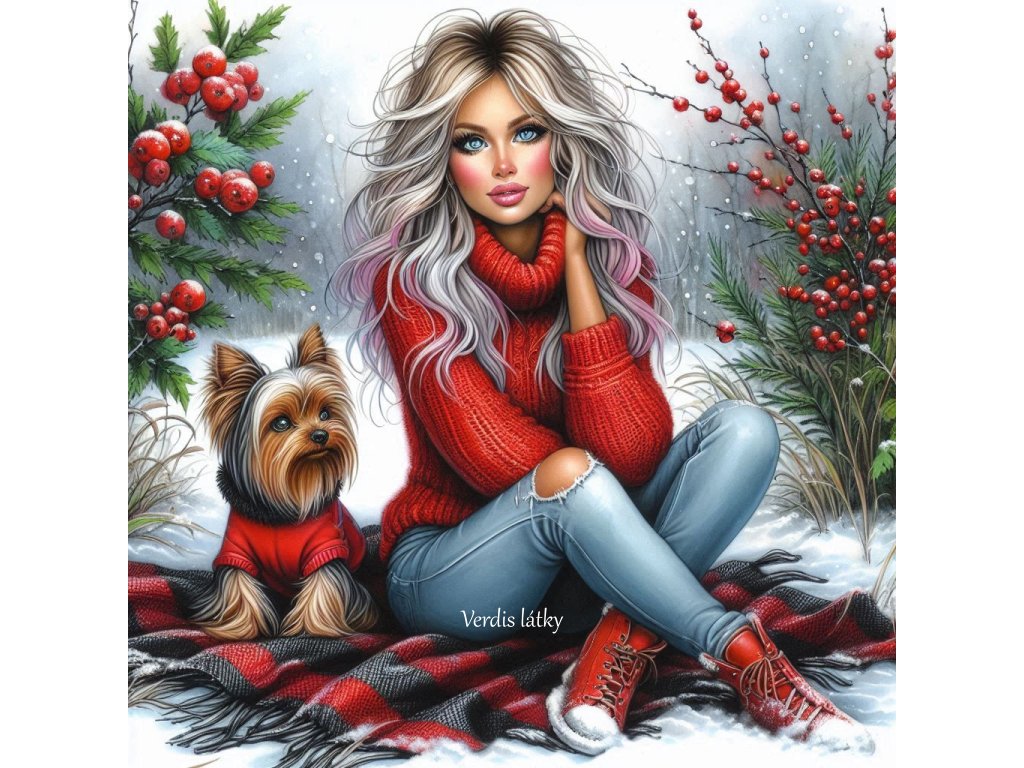 Kočárkovina panel dáma pejsek zimní krajina 5
