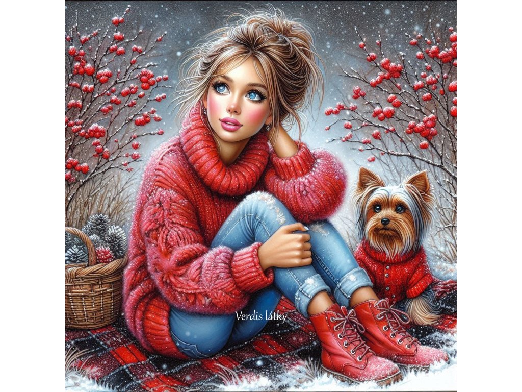 Kočárkovina panel dáma pejsek zimní krajina 6