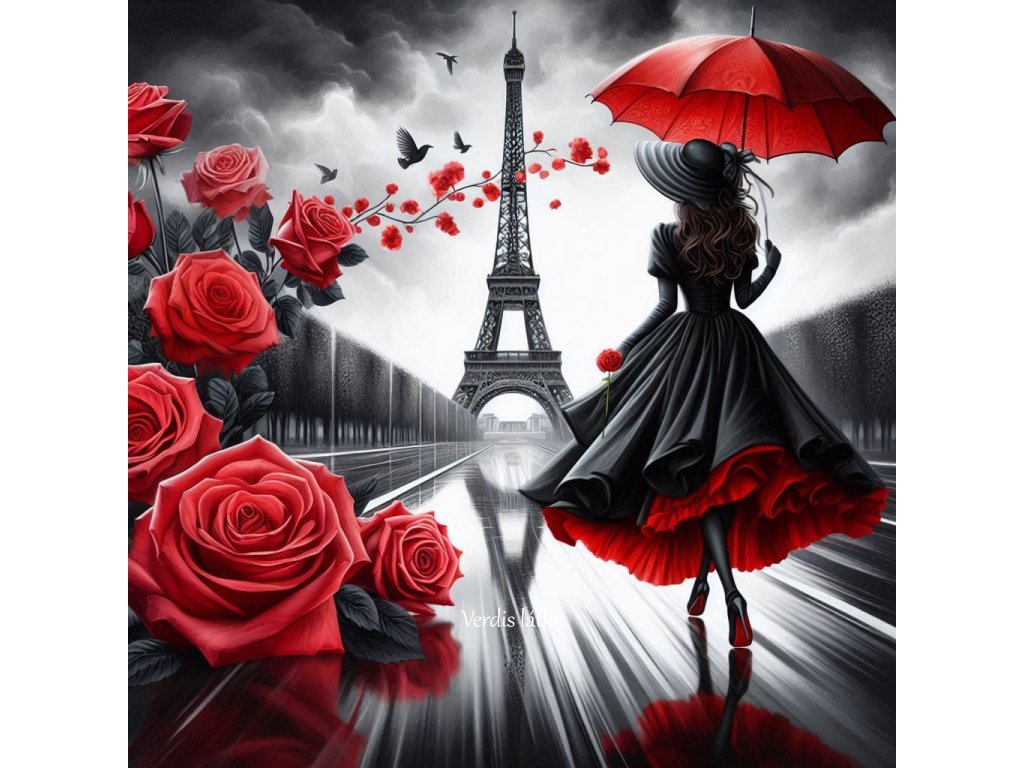 Kočárkovina panel dáma s deštníkem 1 Paříž