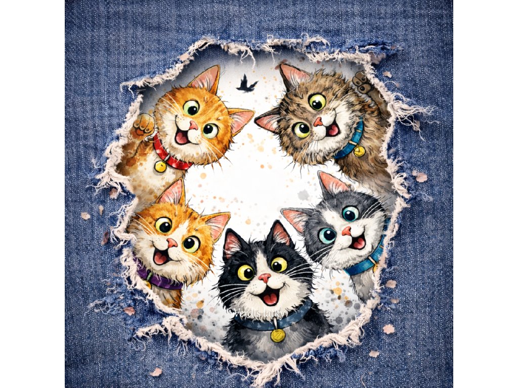 Kočárkovina panel jeans díra - kočičky