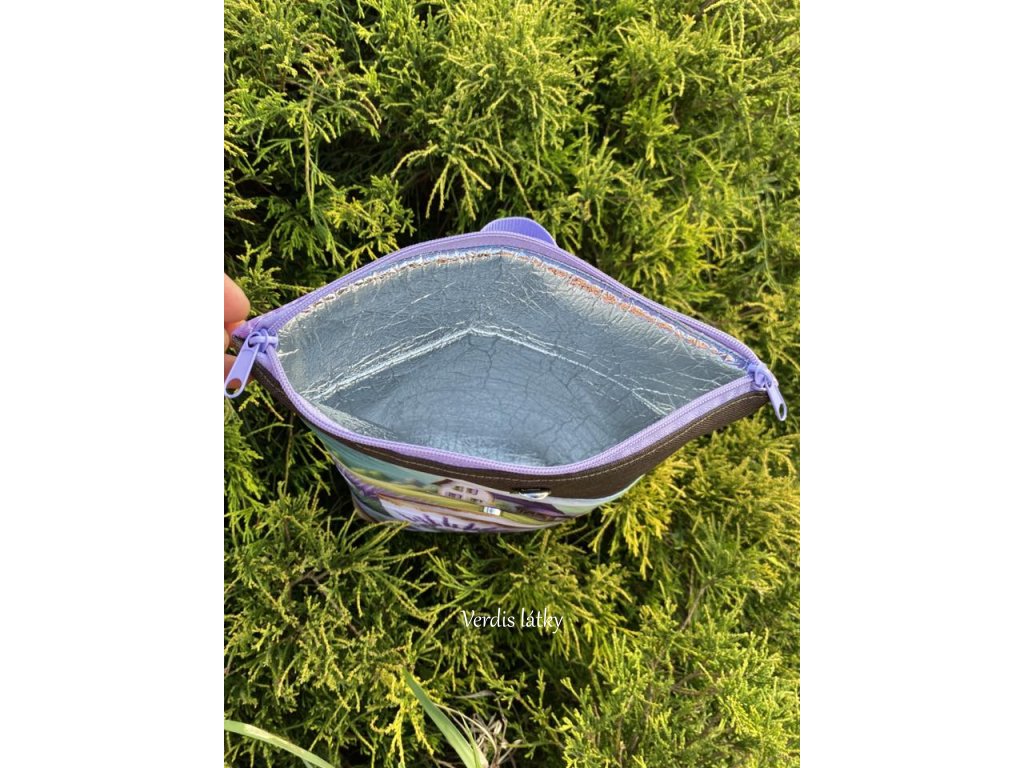Termo pěna, která má izolační vlastnosti. Udržuje teplé nebo studené nápoje či potraviny. Je to netoxický materiál a má atest na styk s potravinami. Je odolná proti otěru a snadno se prošívá.